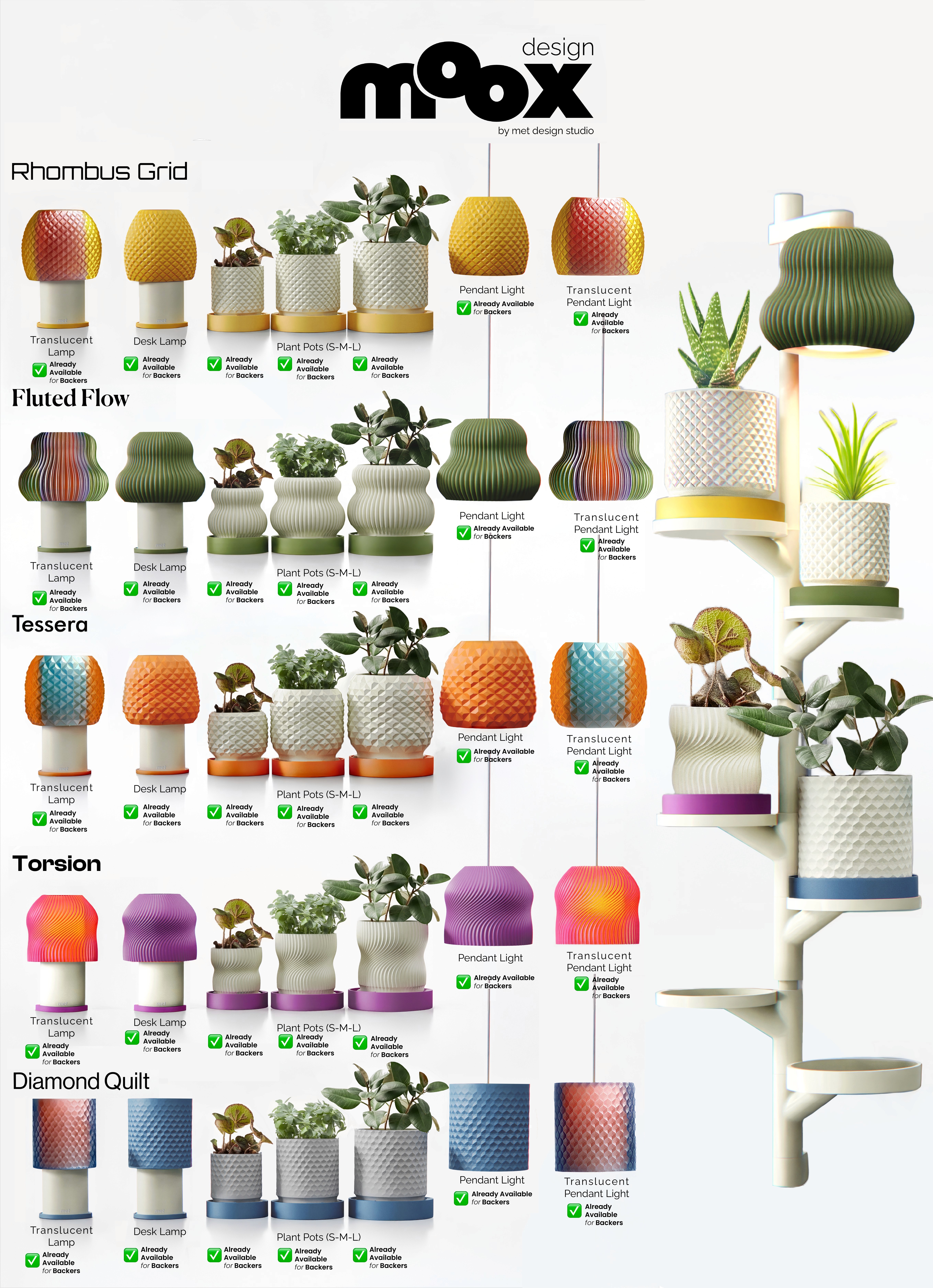 The execution plan is simple and already in progress. The small pots, medium pots, and desk lamps are fully designed. Once the project reaches its goal, We will begin working on the stretch-goal items and expect to complete them within 10 days. All final models will follow the established Moox design principles.