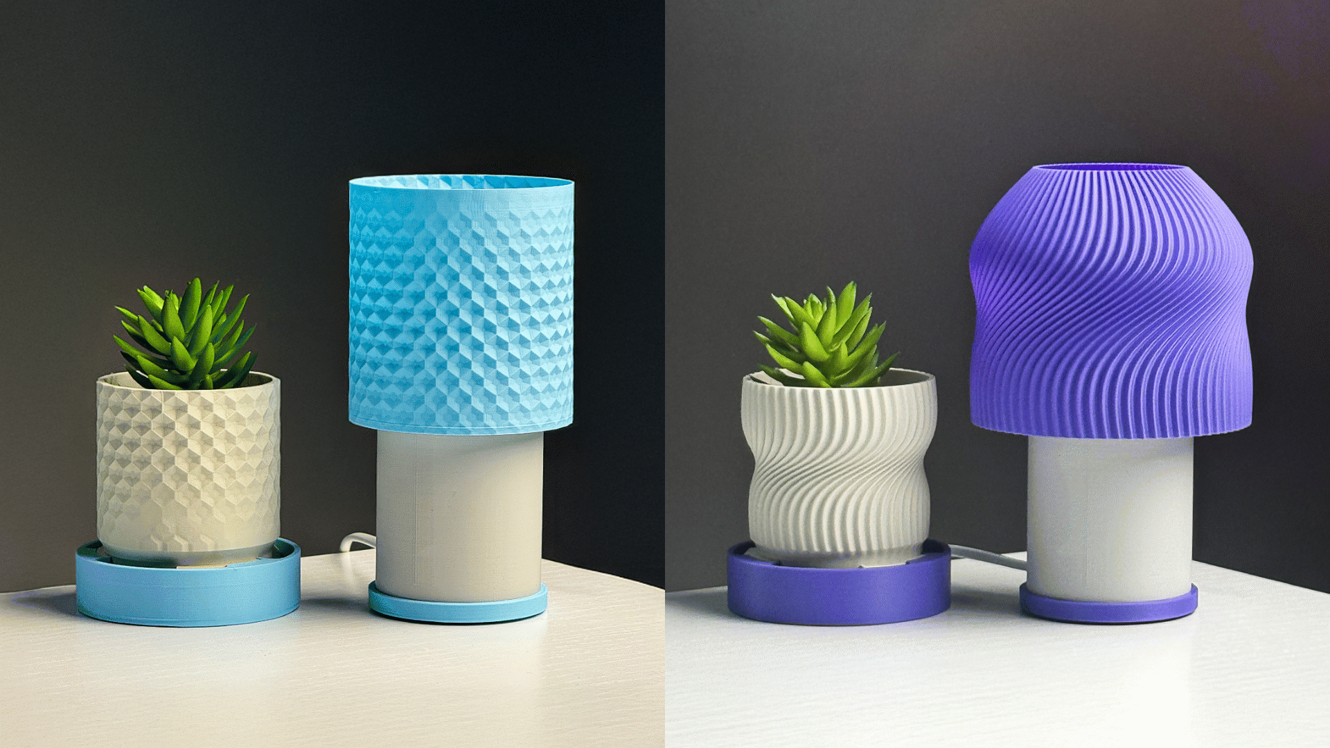 These two images were created with the help of AI tools to demonstrate how our products might look in a real room. The packaging shown is also a quick concept made only to present the idea. If the project reaches its goal, we will design proper packaging only for the lamp, since the lampshades are the only breakable pieces in the collection. They will have a thickness of approximately 0.84 mm, so the packaging will be developed specifically for the lamp designs.