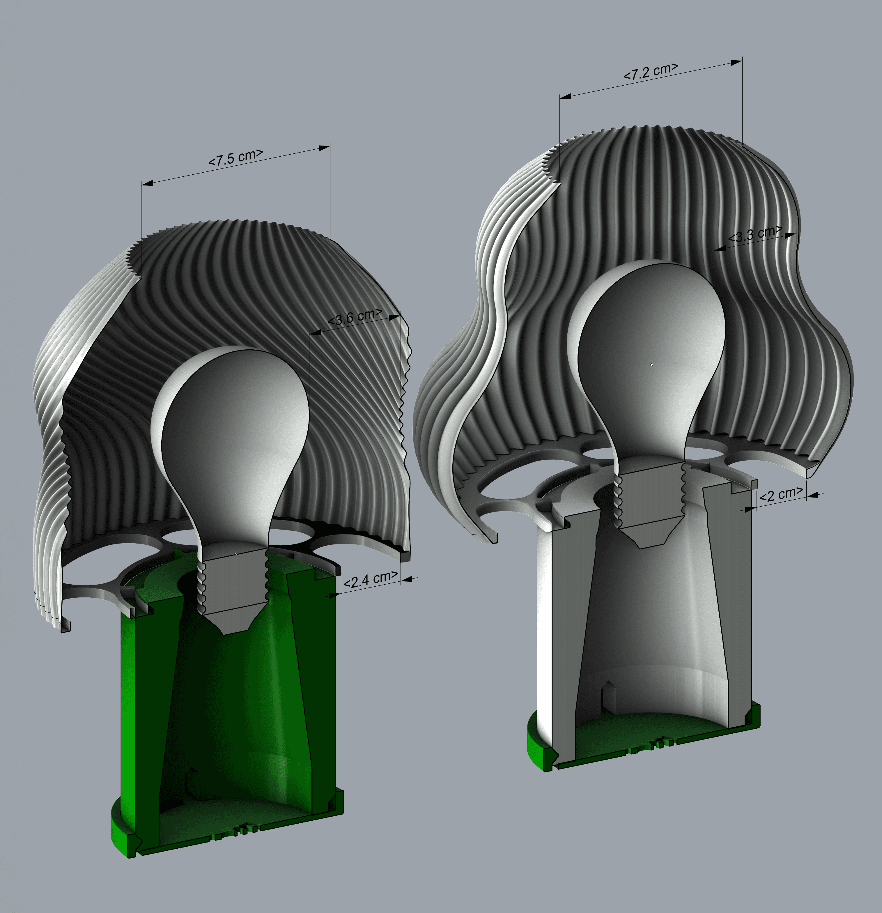 The collection was designed with CE certification requirements in mind, and third-party evaluations were conducted before distribution. This was achieved by leaving large openings at the top and bottom of the shade, and by ensuring that the closest part of the shade is at least 3 cm away from the light bulb. These two examples represent the smallest shade sizes in the collection.